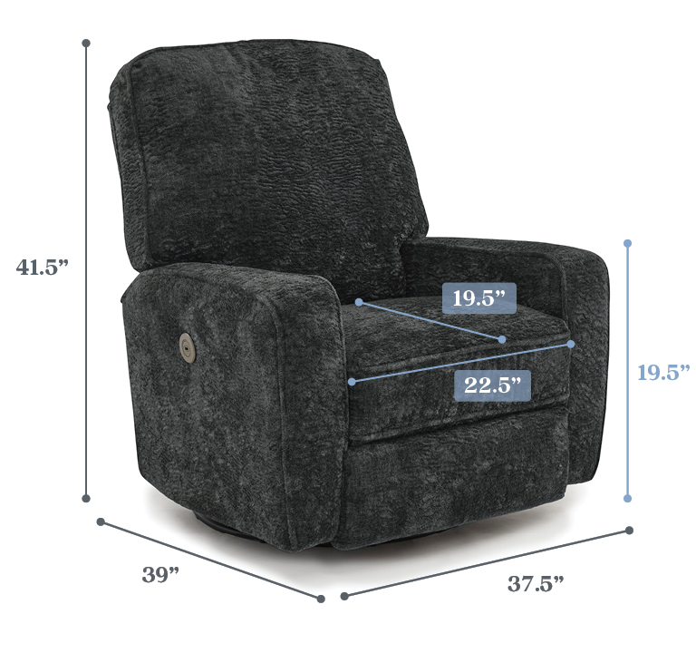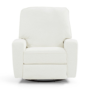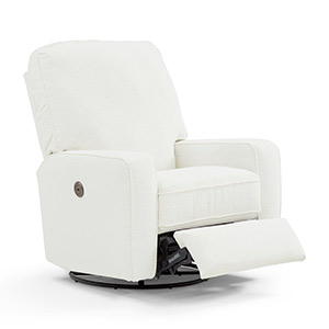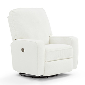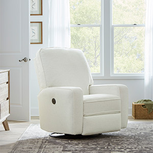 You'll have a blast picking the fabric that best suits this swivel glider recliner. The squared corners and straight lines lend itself to be either contemporary or transitional and can coexist with any of your furniture. Comfort is smooth and effortless with the hidden inside reclining handle, or upgrade to power that features a stylish button on the side that also acts a USB charger. Choose from a wide assortment of fabrics to suit your decor. The Bilana Swivel Glider is a stylish recliner that is ideal for any room of the home, including the nursery.